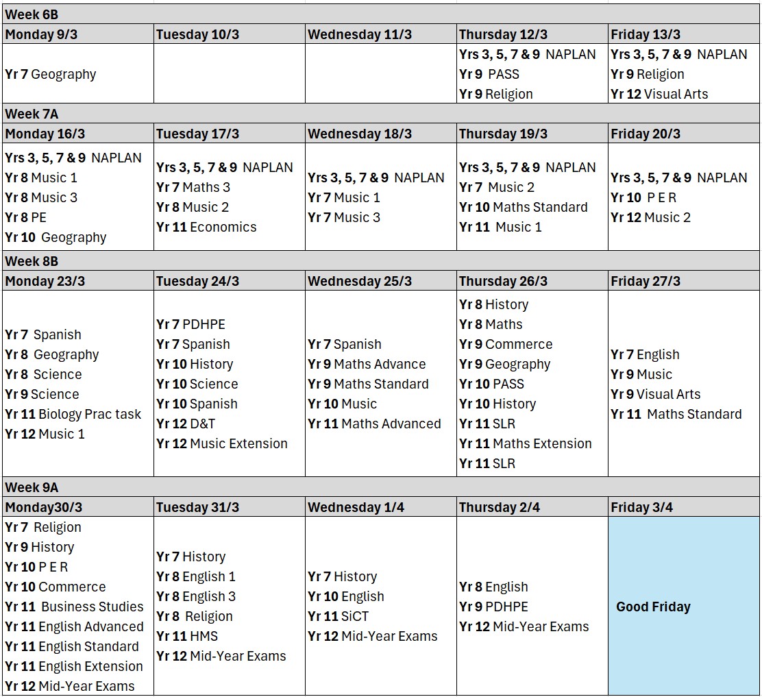 As I write this, our Year 3, 5, 7 and 9 students are sitting their NAPLAN examinations. Irrespective of how published results are used in the media, NAPLAN presents a great opportunity for diagnostics at the individual as well as group level. Each year we carefully analyse results and apply the lessons learned to better tailor our programs to the needs of our students. Let us support our students to do their best, unhampered by nerves or extraneous pressures!