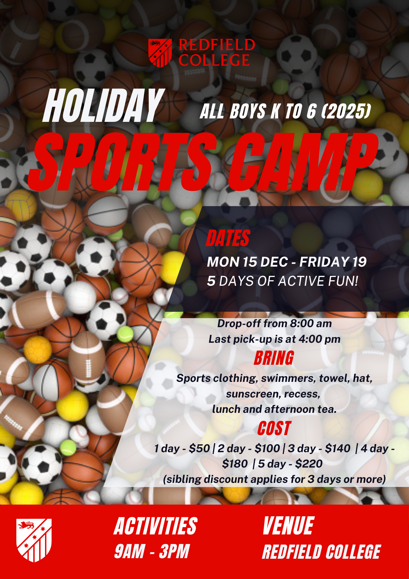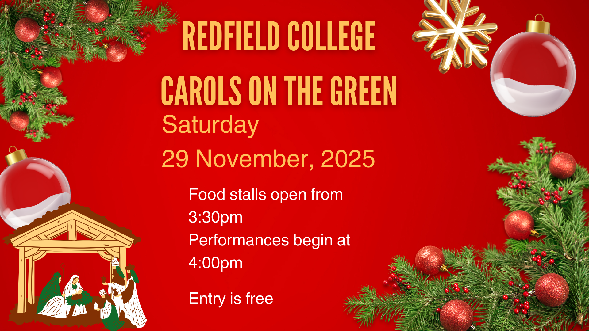 Almost there! There is a lot of hard work going on at Redfield during these final weeks of term. We have had our Year 7-10 End of Year Exams, Year 12 Assessments, and concluding things for our Primary boys. Our resident artists and musicians will show off their talents during our Presentation Night on Wednesday the 10th December, and tomorrow we have a beautiful community occasion of Carols on the Green. I have my raffle tickets - have you?